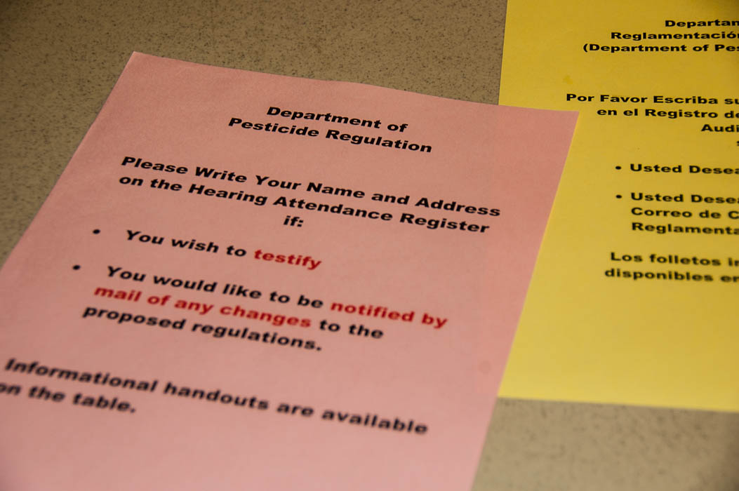 Before it happened, I told my boss at Californians for Pesticide Reform [where I began working in 2003] that we were going to go talk to Senator Florez. And she goes, “What?” And I go, “Yeah, we’ve got to go over there, because we’re going to talk about the hearing.” And she goes “What, are you kidding?” I said “No, really, he’s going to have a hearing, and he wants us to help.” So we went to his office. Larkin says, “Well, we want to make sure that the questions get to the problem, and we’ll get to the truth. So what are the biggest problems? Or, first, who do we need there?” Well, we want the county ag commissioner there, we want the Office of Environmental Health, Hazard Assessment, OEHHA, we want them there, we want the California Rural Legal Assistance Foundation there. We want Department of Pesticide Regulation. We want Environmental Health there, we want the sheriff, we want the fire department.