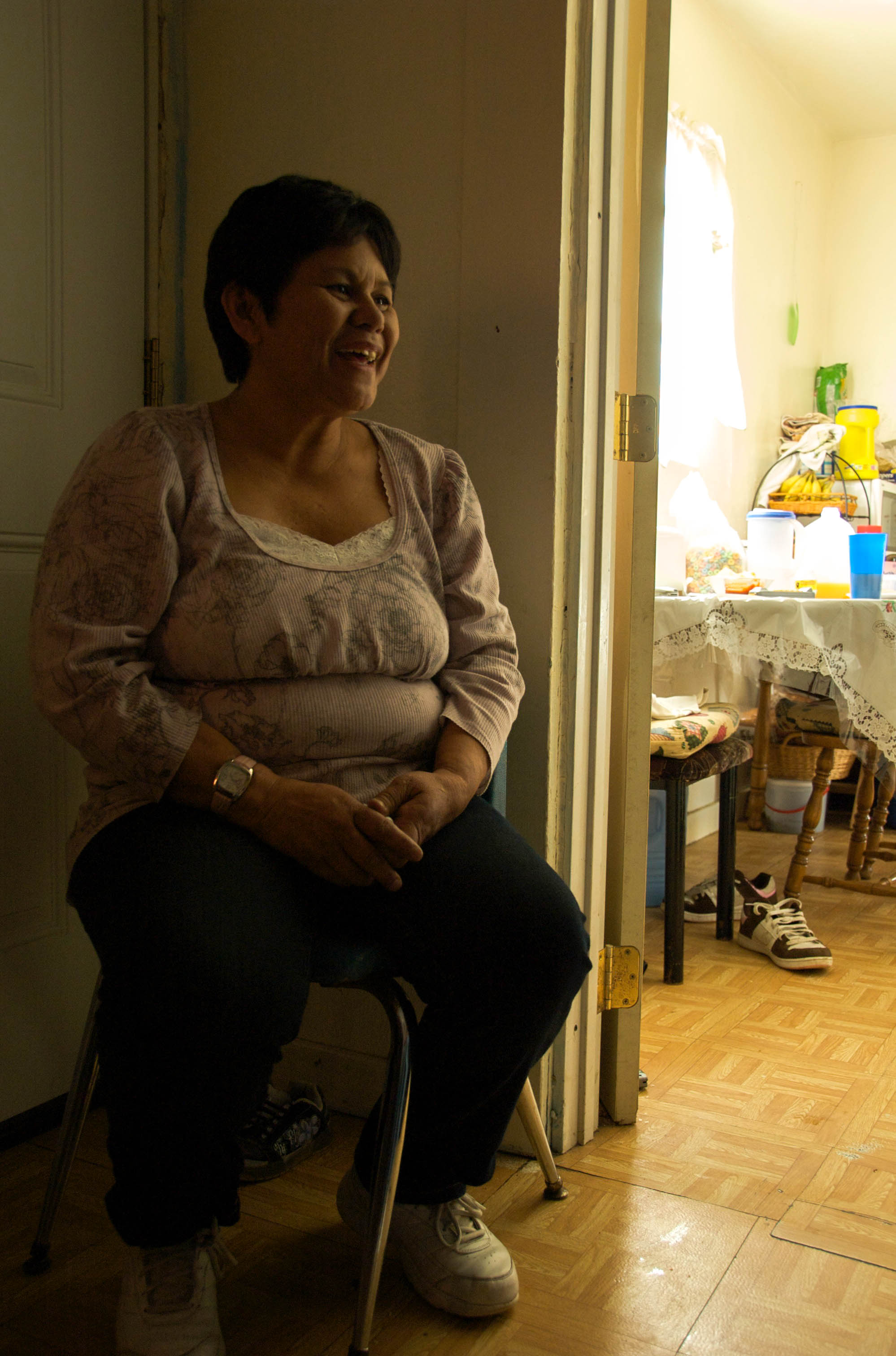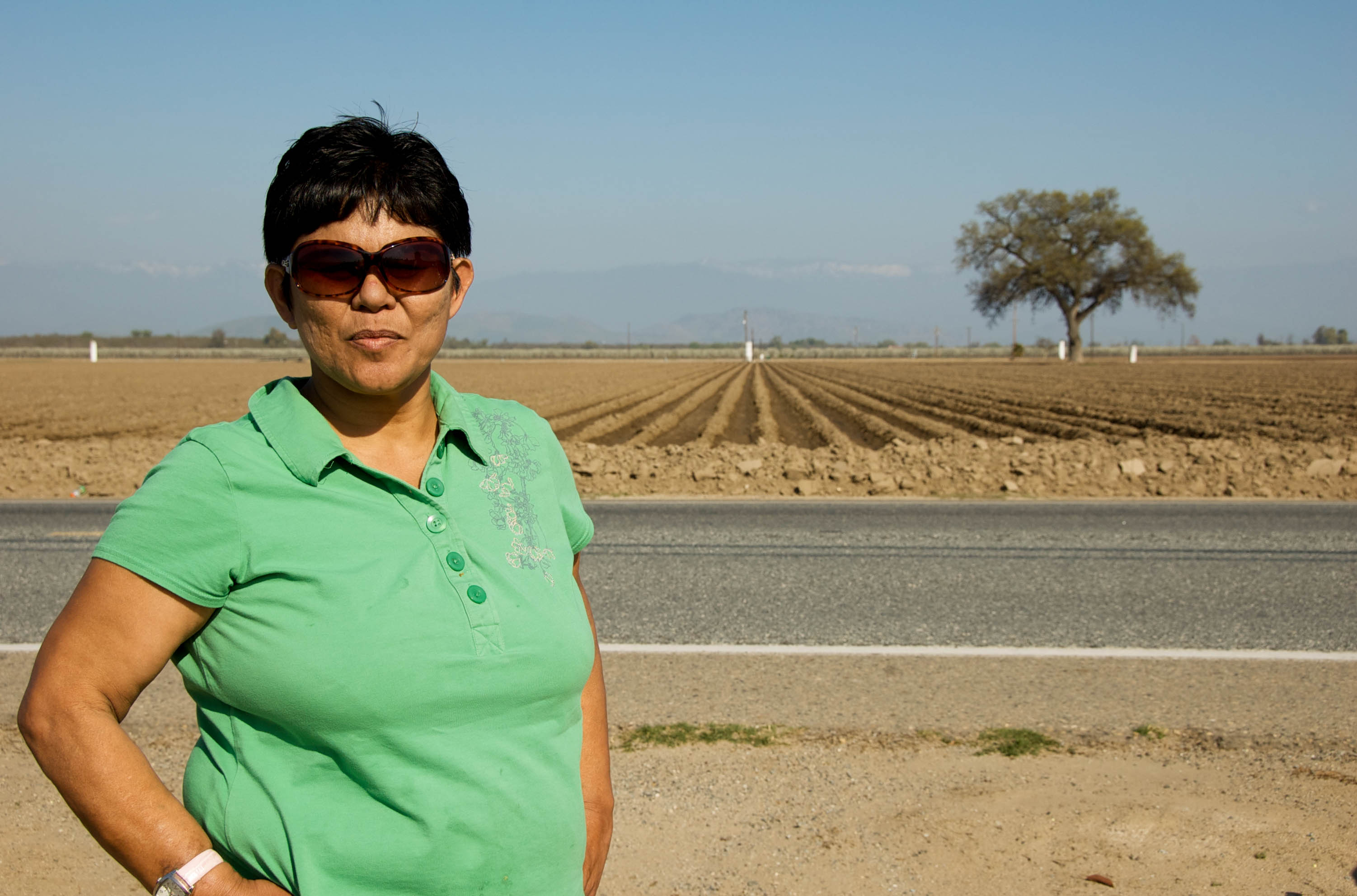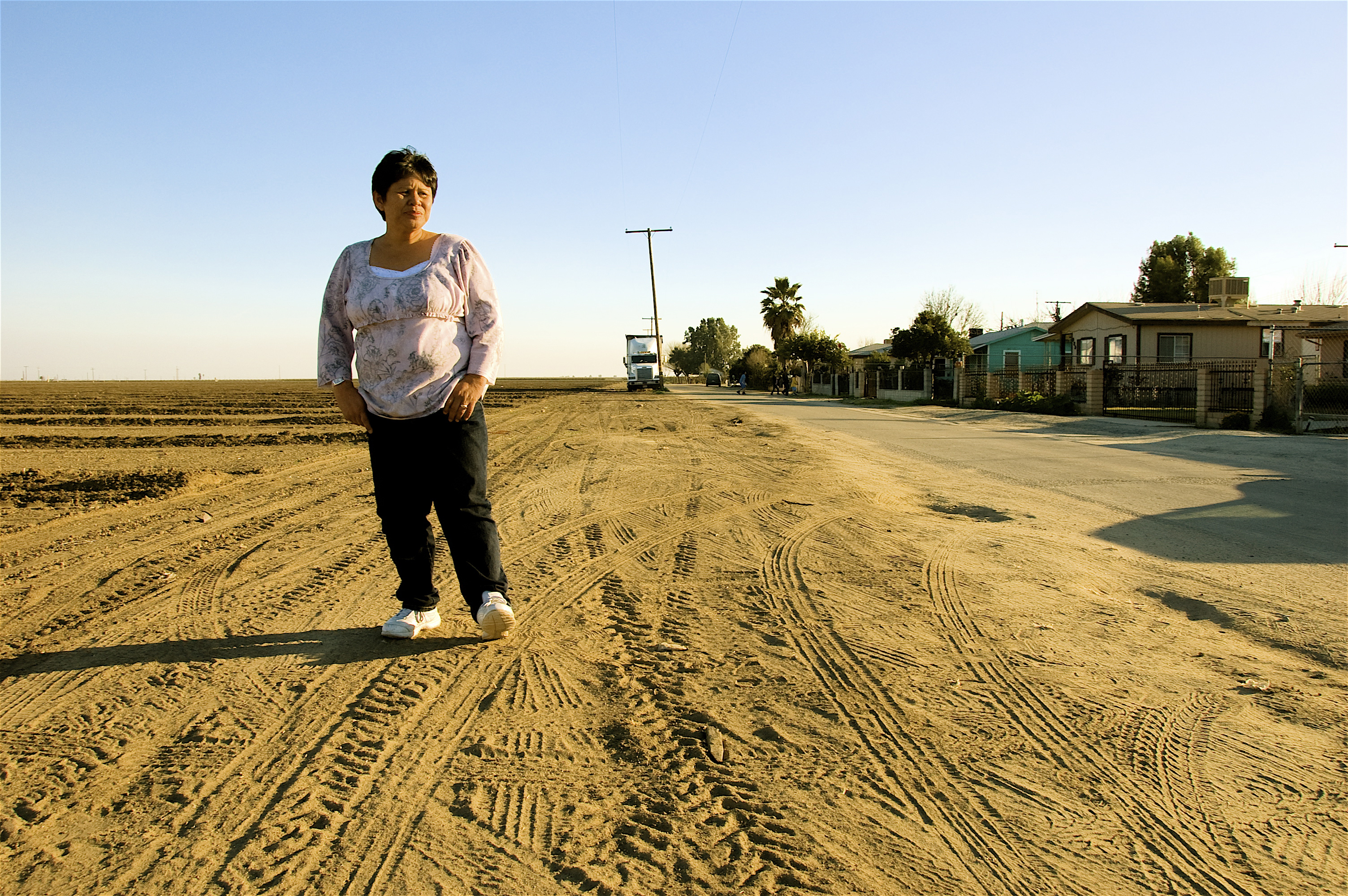 TeresaOutFront copyOur street was the first street to get evacuated [after the pesticide drifted off the fields and into our neighborhood]. I’d driven to Delano, and when I came back there was a sheriff standing at our gate. It had just gotten dark, and my husband said, “We need to get out, because there’s something happening.” I smelled it a little bit, but I didn’t smell it that strong. But I was still very disturbed. It’s a horrible feeling, getting told you’ve got to get out, that there’s something that you shouldn’t be smelling. I got the kids, and we left in the van. My husband got my blind uncle and my 87-year-old compadre, and then we drove. But I was just so fearful for the people that were staying.